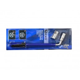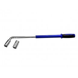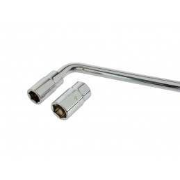 O cabo antiderrapante proporciona uma pegada confortável. Muito prática e ideal para parafusos difíceis de soltar, permite apertar ou soltar parafusos de roda rapidamente. A chave vem com soquetes nos tamanhos 17/19 mm e 21/23 mm, feitos de aço CrV de alta qualidade.