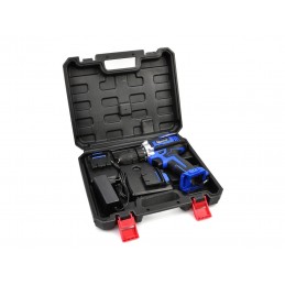 Furadeira/parafusadeira sem fio de 2,1 V. O dispositivo é ideal para perfurar diversos materiais e para apertar e soltar parafusos, porcas , parafusos de chapa metálica, etc. O conjunto inclui duas baterias de 2 Ah, um carregador e um prático estojo de transporte em plástico.