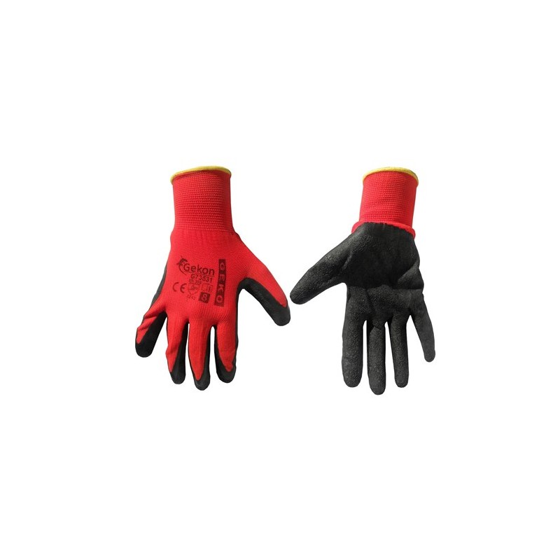 Luvas de trabalho revestidas de látex (vermelhas e pretas) tamanho 8