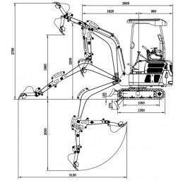 • Raio mínimo de giro da lança: 1580 mm