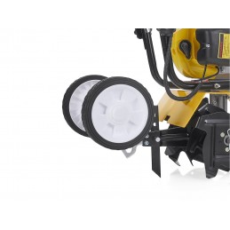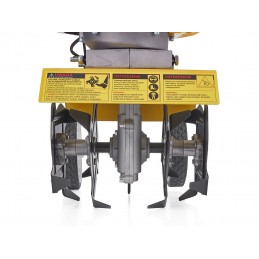 Um conjunto de quatro lâminas de 22,5 cm de diâmetro garante um afrouxamento preciso e profundo do solo. A profundidade de trabalho varia de 5 a 10 cm , permitindo que você adapte a operação da enxada rotativa às suas necessidades individuais e ao tipo de solo.